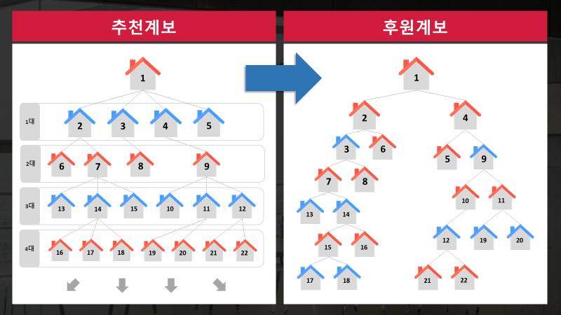 후원계보에 있는 회원분들중 추천계보에는 없는 분들도 있으니까요.
