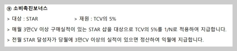 매월 3만cv이상 소비하는 스타회원의 쇼핑몰에 배당을 하는 보너스입니다.
