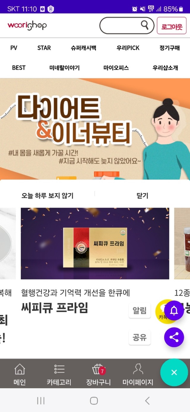우리샵 앱 하단 공유기능으로 행복을 전달해 보세요~~~^^