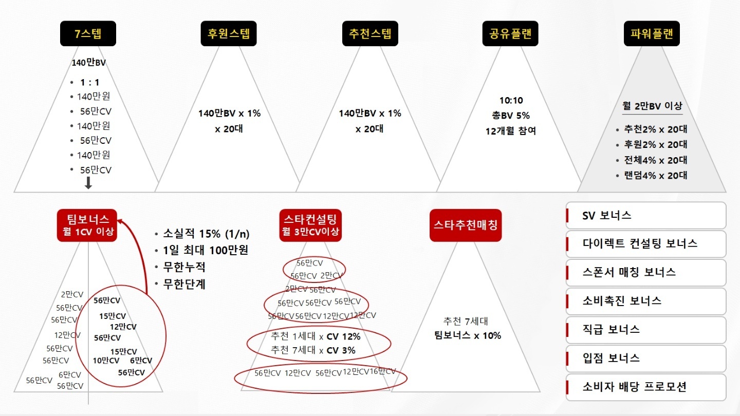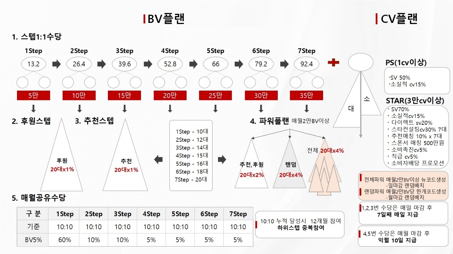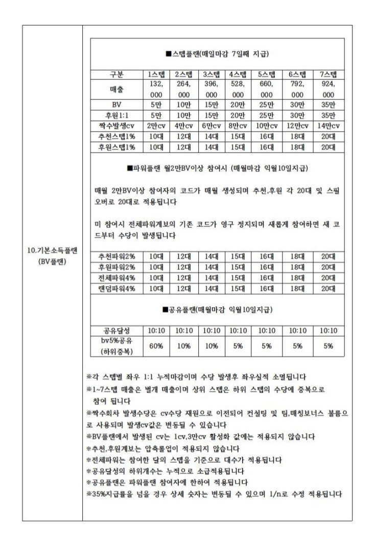 추천,후원,전체파워 계보에서는 20만bv값에 대한 %가 적용됩니다