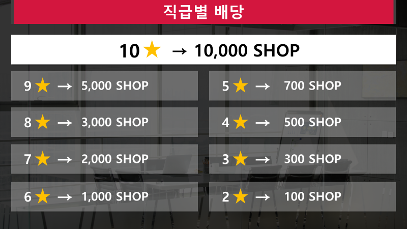 ※ 3스타 한 번의 승급으로 300명의 직추천 창업자 배당되고