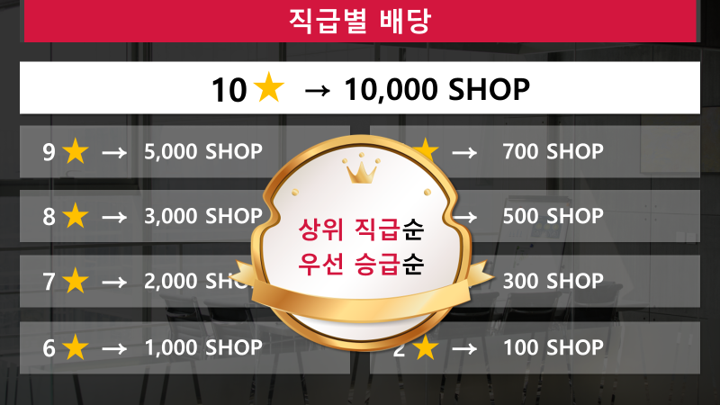 우리샵의 완공선포 전에 2스타가 되시면 소비자 배당을 받습니다.