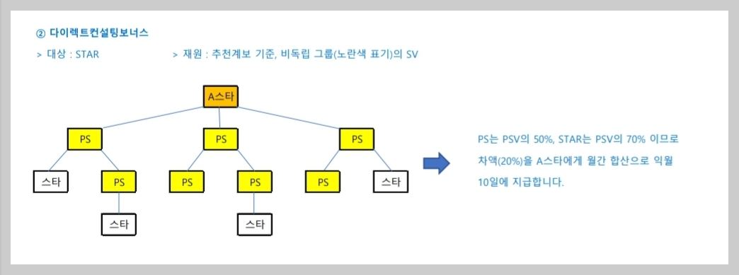 이 컨설팅보너스에는 다이렉트 컨설팅 보너스와 스타컨설팅 보너스가 있구요.
