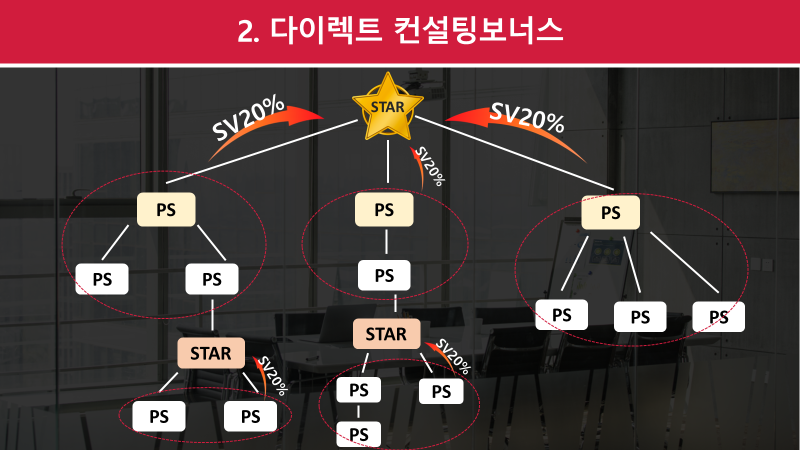 모든 스타는 본인의 산하에 있는 PS의 SV마진의 20%를 다이렉트컨설팅으로 받습니다.