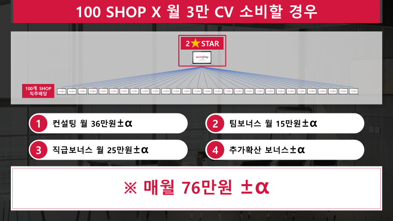 컨설팅보너스 36만원 예상 (100명×30000CV× 1대니까 12% =360,000) 이해되시죠?